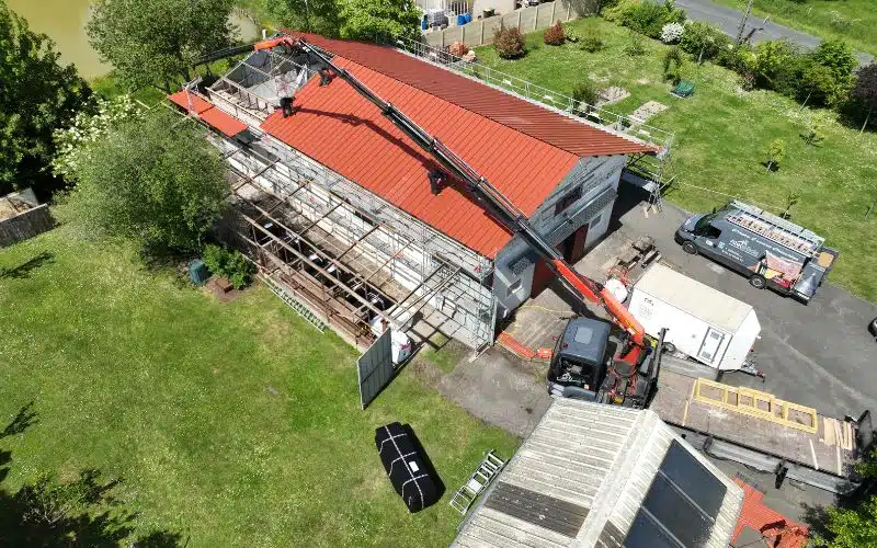 Nos réalisationsadmin2025-12-07T10:49:44+00:00 Toiture Charpente Construction bois Panneaux solaires Réalisations couvreur Longère en petite tuile avec isolation des rampants Tour ronde sur un château à Neung sur Beuvron Couverture cuivre à joint debout sur voligeage Maison du cerf à Villeny toiture neuve petite tuile plate Maison solognote en tuile de payes et lucarne tavaillon Salle de réception avec colombage en chêne Toiture cuivre joint debout sur faible pente Raccordement de la couverture pour fermeture du toit Noue en tuile dite « mêlée » pour finition parfaite Rénovation avec engin de levage d’une longère en sologne Rénovation de la toiture du château en ardoise MH Toiture d’un pool house sur un étang à Villeny Toiture hangar en bac acier Maison solognote à Chambord rénovation et isolation de toiture Maison en tuile mécanique à Neung sur Beuvron Couverture bâtiment industriel bac acier & désenfumage Tour carré sur dépendance d’un château à Ligny le Ribault Tour sur château à Romorantin Maison en tuile et isolation de la couverture Réalisations charpentier Local d’activité en lamellé-collé Renforcement d’une ferme pour création d’un solivage Préau en chêne et petites tuiles Maison plein pied en Sologne Charpente d’une tour ronde et voligeage Aménagement d’un étage avec escalier bois/métal Nouvelle charpente traditionnelle Pool housse en chêne Aménagement de comble pour suite parentale Grenier sous un nouveau hangar à Neung sur Beuvonr Toiture avec pannes et arbalétriers en lamellé-collé Création d’un solivage en sapin Hangar pour tracteur en Sologne Garage en bois avec un étage aménagé Pool housse en chêne Charpente traditionnel d’un agrandissement Reprise d’une ferme en sous oeuvre (étaiement) Aménagement de comble et création de chevêtre Grutage des panneaux d’isolation extérieur Renforcement d’une ferme pour aménagement d’une étage Réalisations construction bois Pergola en douglas à Blois Maison de plein pied en chêne à chambord Maison solognote en ossature bois crépis/colombage Hangar pour tracteur en Sologne Colombage sur maison bois à Neung sur Beuvron Maison bois style contemporain à Blois Habillage en bardage douglas de la façade Habillage d’une pignons en bardage gris anthracite Création d’une mezzanine en faux clair voie Création d’un garage pour camping car Création d’un hangar pour matériel agricole Extension d’une maison en colombage chêne Réalisations pose de panneaux solaires intégration du solaire sur petite tuile Kit 3Kwc sur bac acier Kit 9Kwc sur carport et ombrière bois Intégration de kit 6Kwc encastré sur tuile Panneaux photovoltaïque en toiture Kit 13Kwc sur hangar bac acier Kit 8Kwc sur longère solognote en surimposition Fixation des panneaux photovolaïque Kit PV sur toiture tuile Panneaux solaire translucides sur carport installation de micro-onduleur Préparation du support pour kit encastré Terreal