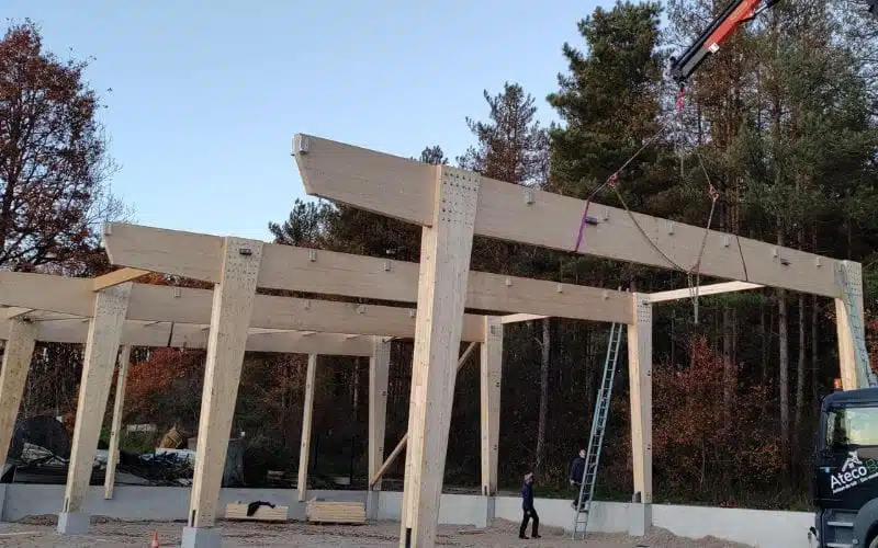 Le bois massif est adapté aux petites et moyennes structures à moindre coût. Le lamellé-collé permet des portées longues, une meilleure stabilité, et une finesse de structure idéale pour des bâtiments modernes ou esthétiques.